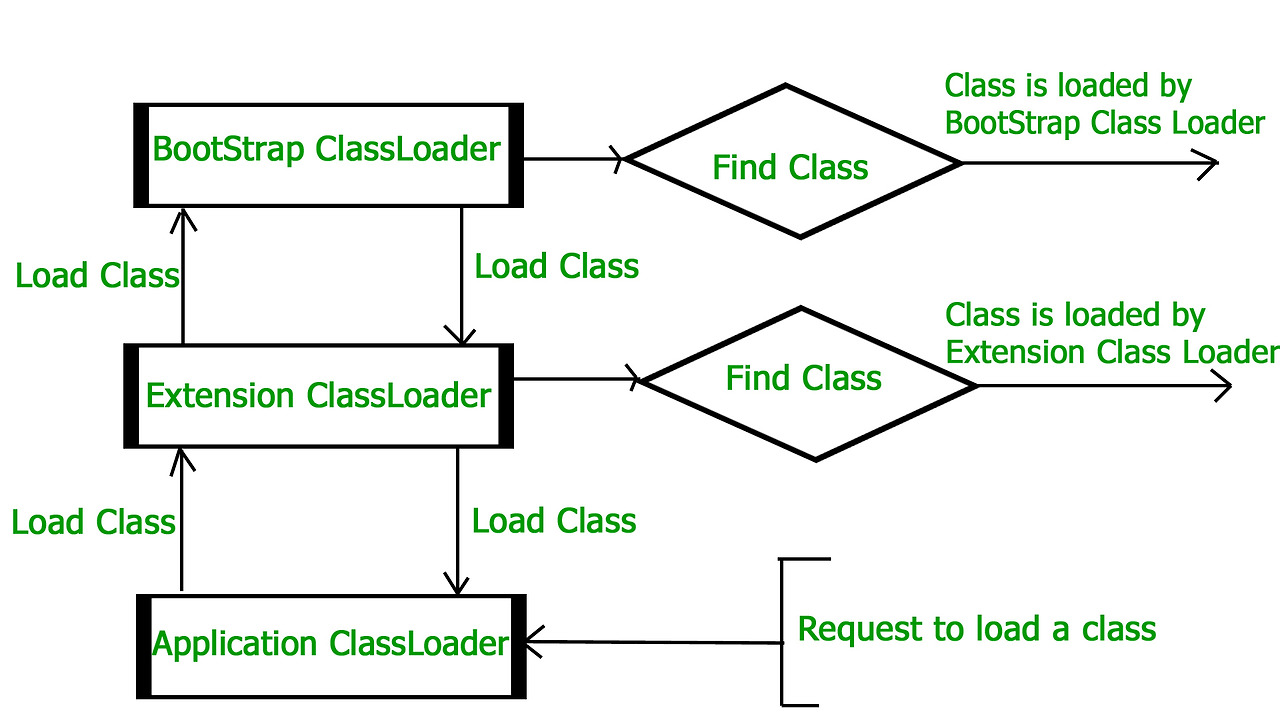 - JVM은 클래스 로더라는 계층 구조를 통해서 .class 파일을 탐색하고 로딩